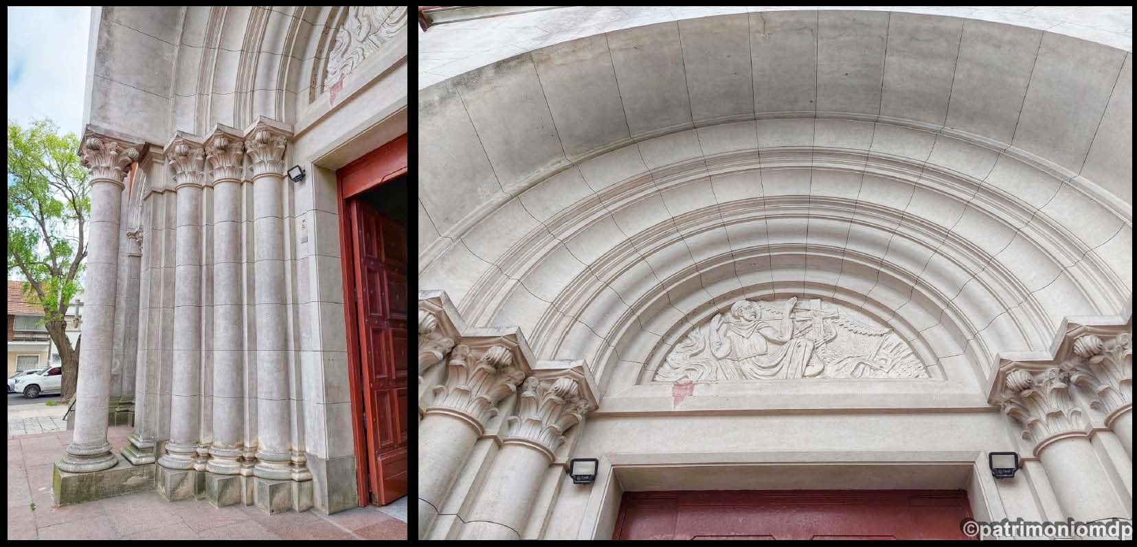 La fachada presenta una escalinata frontal de 7 peldaños que abarca al